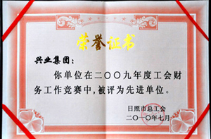 ·2010年7月,興業(yè)集團(tuán)在2009年度工會財(cái)務(wù)工作競賽中,被日照市總工會評為先進(jìn)單位