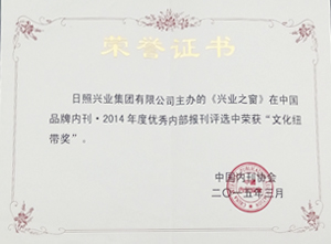 ·2015年3月,《興業(yè)之窗》在中國品牌內(nèi)刊2014年度優(yōu)秀內(nèi)部報(bào)刊評(píng)選中榮獲"文化紐帶獎(jiǎng)"