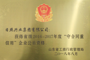 ·2018年8月,興業(yè)集團(tuán)獲得省級(jí)2016-2017年度守合同重信用企業(yè)