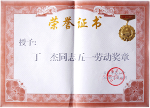 · 2005年4月,授予丁杰董事長(zhǎng)“五一勞動(dòng)獎(jiǎng)?wù)隆?br>