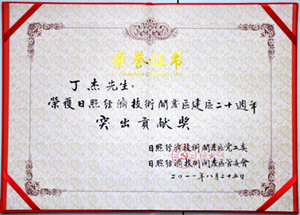 ·2011年8月25日,丁杰董事長(zhǎng)榮獲“日照經(jīng)濟(jì)技術(shù)開發(fā)區(qū)建區(qū)20周年”突出貢獻(xiàn)獎(jiǎng)