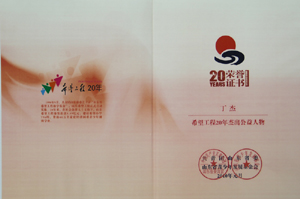 · 2005年5月8日,丁杰董事長(zhǎng)獲得希望工程杰出貢獻(xiàn)獎(jiǎng)