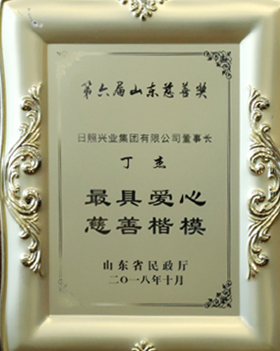 ·2018年10月,丁杰董事長(zhǎng)被授予山東省“最具愛心慈善楷!