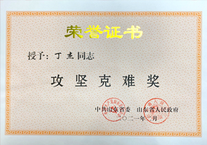 ·2021年2月,山東省政府授予丁杰董事長(zhǎng)“攻堅(jiān)克難獎(jiǎng)”