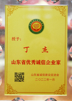 ·2022年1月,丁杰董事長(zhǎng)獲評(píng)“山東省優(yōu)秀誠信企業(yè)家”