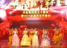 “再創(chuàng)新輝煌”興業(yè)集團2013年春節(jié)聯(lián)歡晚會歷時2個多小時,節(jié)目形式有歌舞、雜技、相聲、器樂、戲曲、情景朗誦等,內容豐富,精彩紛呈;特別是央視著名主持人小尼和國家一級演員李玉剛等明星的加盟,讓整臺晚會無比璀璨;借助演播大廳極具現(xiàn)代化的舞美燈光效果驚艷四座,為我集團成立十周年畫上濃墨重彩的一筆,充分展示了我集團的企業(yè)實力,謳歌了興業(yè)人艱苦奮斗、團結協(xié)作、拼搏進取的創(chuàng)業(yè)精神和興業(yè)報國的高尚情懷,也為港城人民獻上了一場精彩、難忘、歡樂、美好的文化盛宴。 |