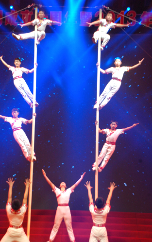 幾名特殊的嘉賓的到來,讓晚會增添了一份的感動,他們是興業(yè)希望小學的老師和同學代表以及我集團資助的大學生代表,一句“謝謝興業(yè)集團的叔叔阿姨們”,一個鞠躬,一曲《愛的世界》讓全場唏噓動容,他們用自己平實的語言表達了對興業(yè)的愛,用自己質樸的歌聲表達對那些勇于承擔社會責任的企業(yè)和企業(yè)家們的感恩。十年里興業(yè)的發(fā)展可謂一步一個臺階節(jié)節(jié)高,雜技《節(jié)節(jié)高》驚險刺激,攀出了興業(yè)人的沖天豪氣,場下觀眾驚呼不已,拍手叫絕;著名歌手楊臣剛帶來耳熟能詳?shù)摹独鲜髳鄞竺住、《好兄弟》,將現(xiàn)場帶入溫馨的大合唱。