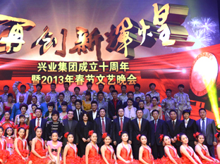 蛟龍昂首高歌去,金蛇迎春送福來,闊步奔騰開勝景,春風浩蕩展宏圖。1月19日晚,“再創(chuàng)新輝煌”日照興業(yè)集團成立十周年暨2013年春節(jié)文藝晚會在日照市會展中心盛裝上演。央視著名主持人尼格買提擔當主持嘉賓,李玉剛、任靜、付笛生、王二妮、楊丞剛等明星聯(lián)袂助陣。我集團領導班子和來自興業(yè)各條戰(zhàn)線上的職工代表1600余人歡聚一堂,載歌載舞,共享勝利的喜悅,歡慶新春佳節(jié)的到來。日照市金融界各大銀行行長、新聞媒體、業(yè)務合作伙伴的領導和嘉賓應邀觀賞了晚會。
