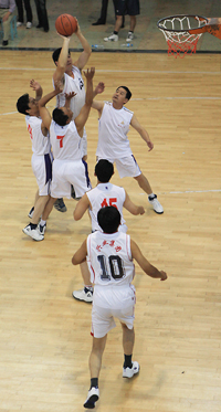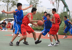 在比賽過程中各支代表隊(duì)都發(fā)揮出了極高的水平,為觀眾奉獻(xiàn)了一場場精彩的比賽。尤其在9月20日上午的交叉賽中,興業(yè)汽配代表隊(duì)與天泰鋼結(jié)構(gòu)代表隊(duì)勢均力敵,比賽中雙方比分交替上升,離結(jié)束還有不到20秒時(shí),汽配代表隊(duì)61:58領(lǐng)先3分并持有球權(quán),此時(shí)汽配隊(duì)員的心理感覺穩(wěn)操勝券,一個(gè)不經(jīng)意的走步把球權(quán)送給對(duì)手,離結(jié)束不到2秒,鋼構(gòu)中鋒馬沖順勢強(qiáng)攻,一記精準(zhǔn)的3分遠(yuǎn)投, 將比分追成61平,使比賽拖進(jìn)加時(shí)。在加時(shí)賽中,汽配中鋒崔冰連續(xù)中投得手,興業(yè)汽配代表隊(duì)最終以73:65的比分完勝鋼構(gòu),躋身本屆籃球比賽的冠、亞軍決賽。因?yàn)樘鞖庠颍?月20日下午的半決賽、決賽和驥翼組籃球表演賽改在日照一中室內(nèi)籃球場舉行。半決賽、決賽異常激烈,特別是在興發(fā)和汽配之間進(jìn)行的決賽,展示了興業(yè)集團(tuán)籃球的實(shí)力和水平,興發(fā)隊(duì)員們一次次嫻熟的配合,一個(gè)個(gè)精彩的扣籃,不時(shí)獲得現(xiàn)場觀眾的陣陣喝彩和掌聲。集團(tuán)驥翼隊(duì)與興發(fā)驥翼隊(duì)的籃球表演賽同樣上演了群雄大戰(zhàn),集團(tuán)驥翼隊(duì)在王建國總經(jīng)理帶領(lǐng)下,抗拒了體力不足,堅(jiān)持打滿全場,最終以44:44的比分和興發(fā)驥翼隊(duì)握手言和(因?qū)俦硌葙惒辉偌訒r(shí)),也宣告興業(yè)集團(tuán)第五屆職工運(yùn)動(dòng)會(huì)籃球比賽鳴金收兵。