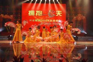 張開堅(jiān)定的臂膀 擁抱希望的春天 “擁抱春天”興業(yè)集團(tuán)2009年春節(jié)聯(lián)歡晚會(huì)隆重舉行 鼠去牛來辭舊歲,龍飛鳳舞慶新春。1月17日,“擁抱春天”興業(yè)集團(tuán)2009年春節(jié)聯(lián)歡晚會(huì)在日照廣播電視演播大廳隆重舉行。丁杰、王建國、韓金軍、趙文強(qiáng)、劉永漢、申作華、李春賢等領(lǐng)導(dǎo)和集團(tuán)工作標(biāo)兵、先進(jìn)工作者,及各分公司的職工代表500多人歡聚一堂,一同興致勃勃地觀看了演出。 整臺(tái)晚會(huì)在歡快、精彩、喜慶的歌伴舞《歡天喜地》中拉開了帷幕。旋律優(yōu)美的歌舞器樂表演《日照,我眷戀的故鄉(xiāng)》,深情的表達(dá)了興業(yè)人對家鄉(xiāng)的熱愛;公司王鵬的獨(dú)唱《今天》唱出現(xiàn)代人對生活的執(zhí)著追求;興業(yè)房產(chǎn)的姑娘們自編自演的舞蹈《趕!,惟妙惟肖的表現(xiàn)出了海邊人的趕海樂趣。小品《牛老板買房》來源于生活、取材于銷售工作,通過小品中的牛老板對銷售人員的現(xiàn)場考驗(yàn),進(jìn)而義無反顧的買興業(yè)房子這一主題,再現(xiàn)了興業(yè)房產(chǎn)旨在用服務(wù)贏得客戶,用真誠打動(dòng)業(yè)主,堅(jiān)持走品牌戰(zhàn)略的路線,小品演員逼真到位的表演逗的臺(tái)下的觀眾捧腹大笑;興業(yè)房產(chǎn)副總許愛華和興業(yè)世紀(jì)嘉園社區(qū)阿姨們帶來的太極拳和劍術(shù)表演,剛?cè)岵?jì),相得益彰,展示了人們對中華武術(shù)的傳承與喜愛;激昂高亢的男聲獨(dú)唱《愛不愛我》唱出了年輕人的激情,唱出了年輕人的執(zhí)著;小品《以愛的名義》講述了一名興業(yè)員工和他的妻子在汶川大地震發(fā)生后,無私捐款的感人故事,展示了興業(yè)員工崇高的精神境界;情到深處,臺(tái)下的觀眾無不為之潸然淚下。詩歌朗誦《讓抗震精神永遠(yuǎn)激勵(lì)我們向前》將整臺(tái)晚會(huì)推向了高潮,通篇道出了興業(yè)人在汶川發(fā)生震災(zāi)后,積極捐款、捐物、獻(xiàn)血、生產(chǎn)救災(zāi)板房、赴川援建、幫助災(zāi)區(qū)同胞重建家園的感人場景,表現(xiàn)了興業(yè)人在國家災(zāi)難面前一馬當(dāng)先、甘于奉獻(xiàn)的高度社會(huì)責(zé)任感。京韻大鼓《重整河山待后生》表達(dá)了對災(zāi)區(qū)的美好祝愿;歌曲《中國龍》表達(dá)了興業(yè)人的愛國情懷;來自興業(yè)汽配的裴玉用近乎專業(yè)的唱功為大家演唱的歌曲《天路》和青島永杰公司表演的《新疆歌曲串燒》給我們帶來了別開生面的異域風(fēng)情;伴著夢幻般音樂的魔術(shù)《畫中人》,其換衣玄機(jī)著實(shí)讓大家猜摸了一番;歌舞表演《走進(jìn)新時(shí)代》歌頌了中國改革開放三十年的蓬勃發(fā)展,表達(dá)了興業(yè)人對祖國的無限熱愛;本場晚會(huì)的主題歌,原創(chuàng)歌曲《擁抱春天》充分展示了興業(yè)人團(tuán)結(jié)協(xié)作、奮勇拼搏、共度寒冬、擁抱春天的堅(jiān)定信心和美好祝愿,將晚會(huì)再次推向高潮。晚會(huì)最后在《明天會(huì)更好》的優(yōu)美旋律和對新年美好的祝福聲中落下了帷幕。 本場晚會(huì)全部是由興業(yè)集團(tuán)員工自編、自演、自導(dǎo),節(jié)目內(nèi)容健康向上,突出原創(chuàng),充分體現(xiàn)了興業(yè)集團(tuán)優(yōu)秀的企業(yè)文化和興業(yè)員工良好的精神風(fēng)貌。 整臺(tái)晚會(huì)歷時(shí)近兩個(gè)小時(shí),節(jié)目精彩紛呈,觀眾喜聞樂見。 據(jù)了解,“擁抱春天”興業(yè)集團(tuán)2009年春節(jié)聯(lián)歡晚會(huì)將于春節(jié)期間在日照電視臺(tái)各頻道播出,將為全市人民奉獻(xiàn)一道精彩的文藝大餐。 |
