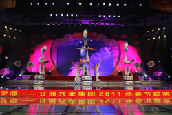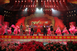“放飛夢想”興業(yè)集團2011年春節(jié)聯(lián)歡晚會歷時2個多小時,節(jié)目形式包括小品、歌舞、雜技、黃梅戲、二人轉、器樂合奏、詩歌朗誦等,內容豐富,精彩紛呈;特別是五洲唱響樂團、東方辣妹的加盟,使演員陣容更加強大;借助千米演播大廳極具現(xiàn)代化的舞美燈光效果驚艷四座,充分展示了興業(yè)集團的企業(yè)實力,謳歌了興業(yè)人艱苦奮斗、團結協(xié)作、拼搏進取的創(chuàng)業(yè)精神和興業(yè)報國的高尚情懷,也為港城人民獻上了一場華麗的文化盛宴。